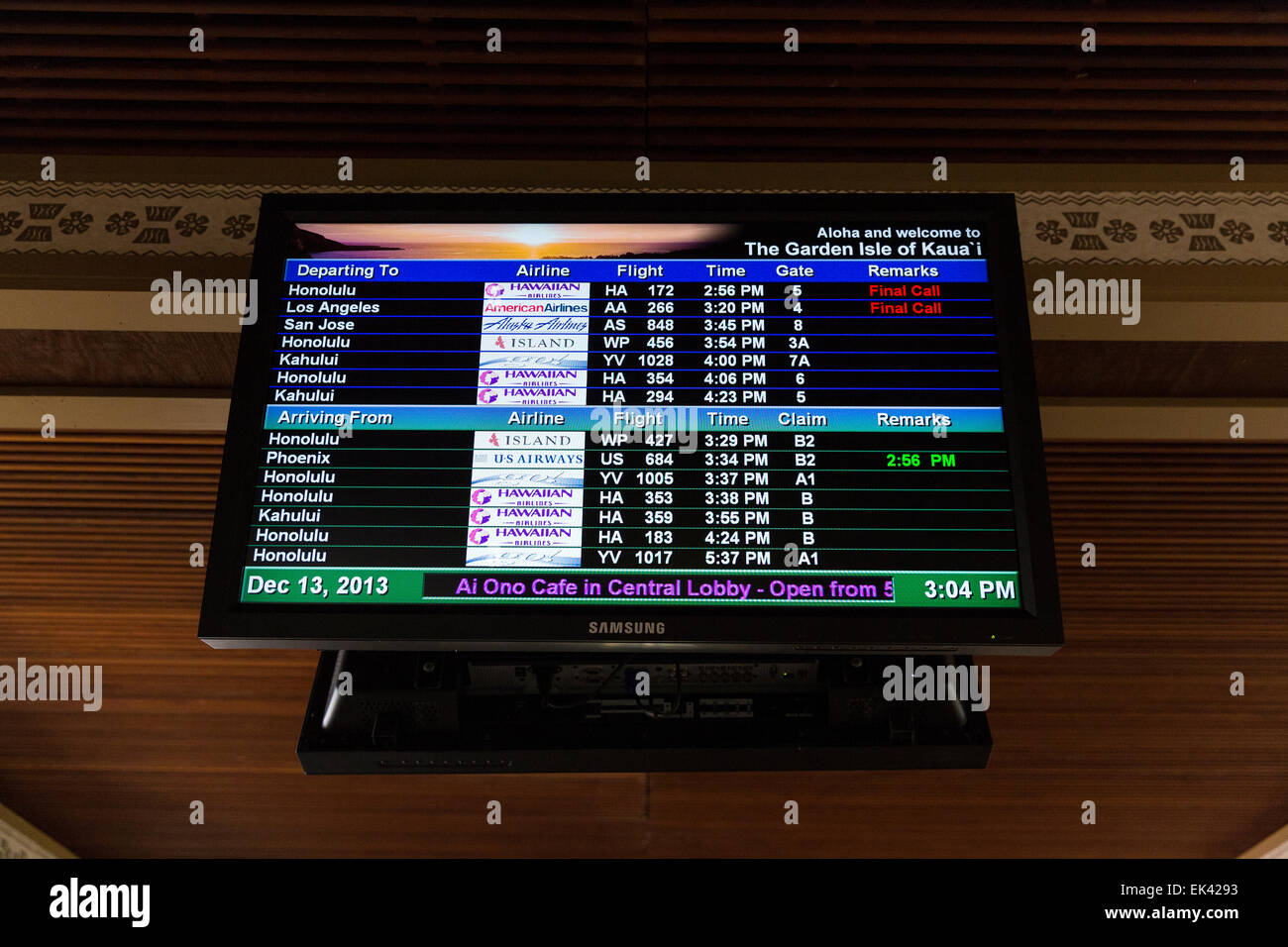 The Flight Information Display System is a centralized information system which displays various flight arrival, departure, destination, carrier, gate assignment, etc., information to the public on large information boards. Displays are located in the various public areas of the Honolulu ... Access Document